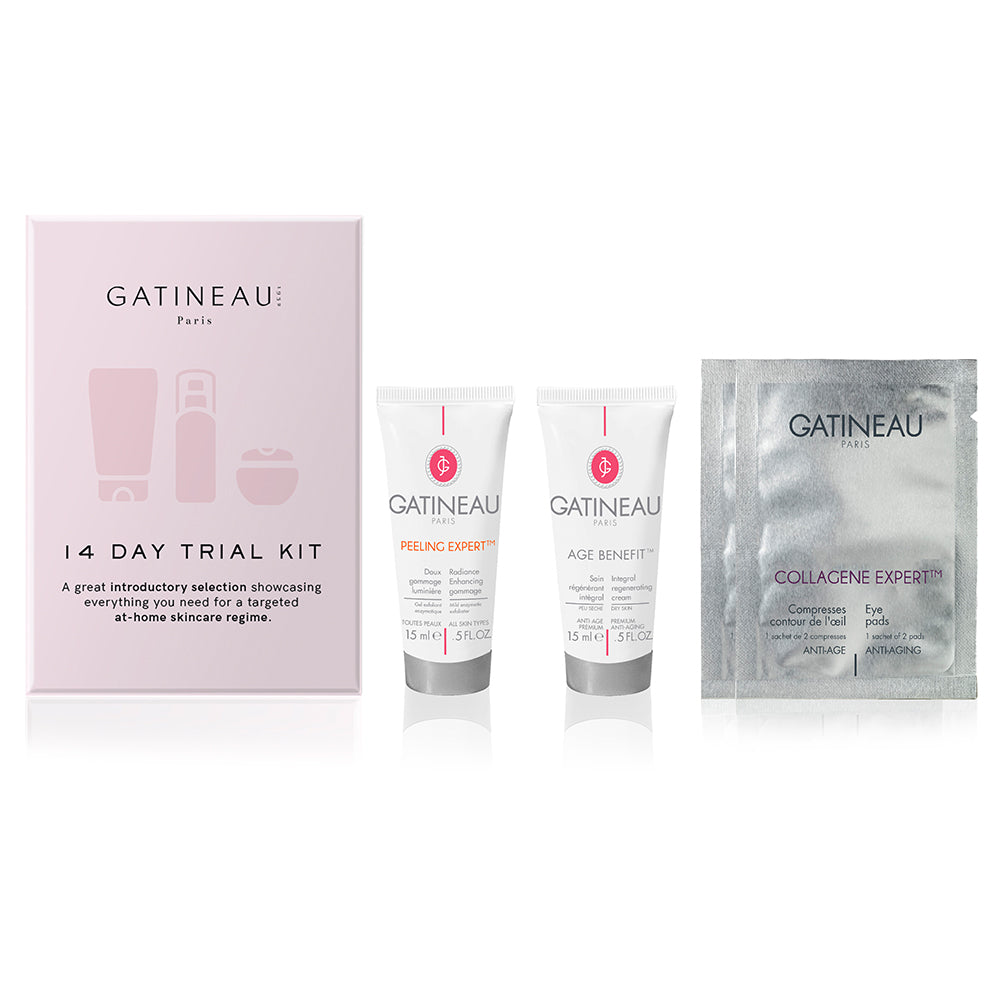 This luxurious treatment collection contains all you need to treat the skin to deep down exfoliation and indulgence. Including Gatineaus mild enzymatic exfoliator Radiance Enhancing Gommage, as well as our iconic Collagene Expert Eye Pads, you are provided with an indulgent treat for the skin! IncludesRadiance Enhancing Gommage 15mlCollagene Expert Ultimate Smoothing Eye Pads (2 sachets, 4 eye pads)Age Benefit Cream – Dry Skin 15ml