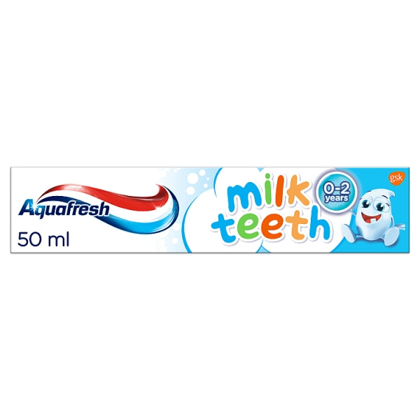 Aquafresh – Milk Teeth Toothpaste 0-2 Years (50ml). Our 0-2 years Milk Teeth toothpaste is tough on decay but gentle on brand new teeth. Use as soon as the first tooth pushes through to encourage strong and healthy teeth.