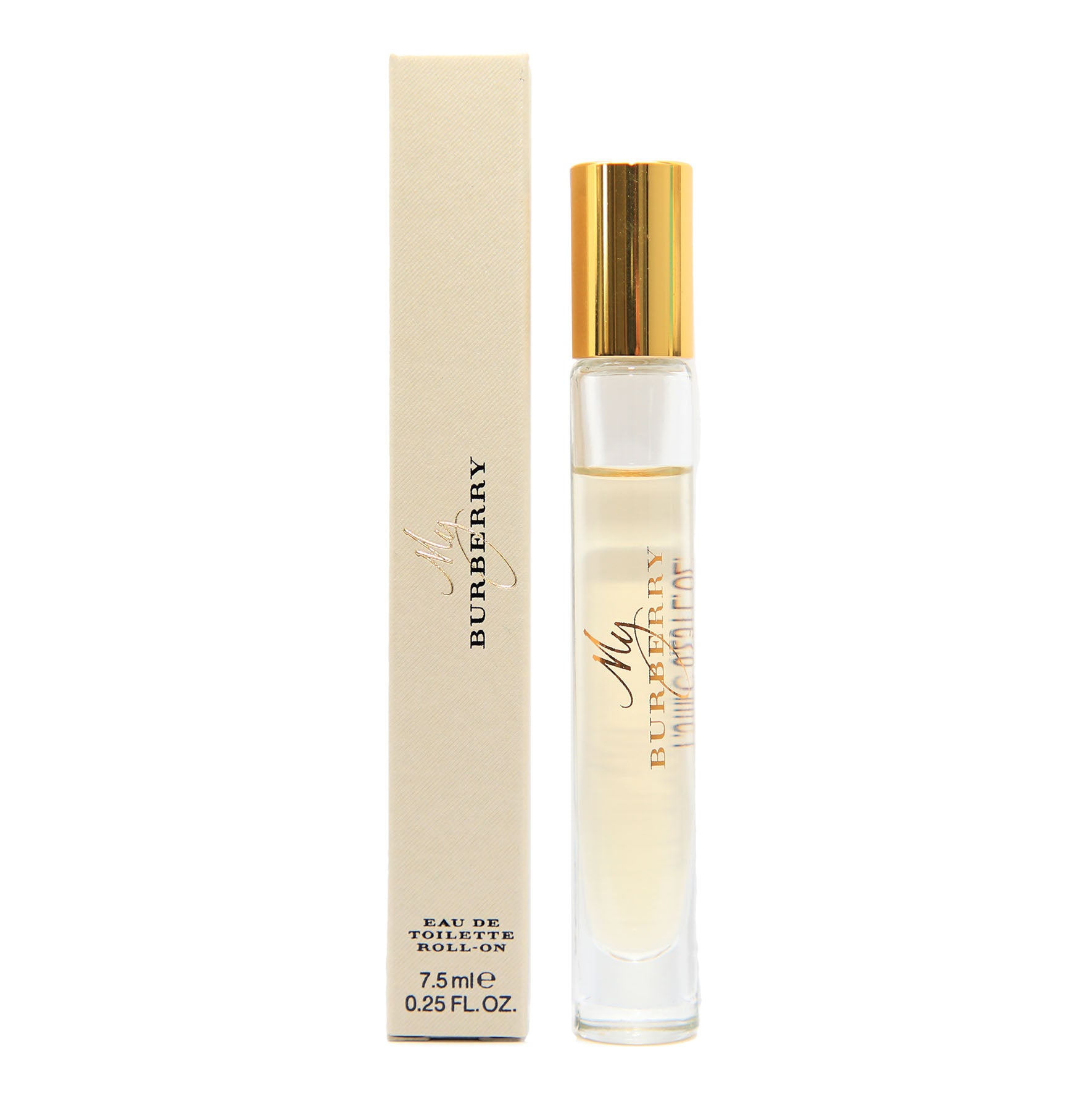 Burberry My Burberry Edt 7.5ml Roller Ball. Burberry My Burberry Eau de Toilette is a floral and sweet fragrance for women. Classed as citrus and fruity scent.. Top notes: Sweet Pea and Bergamot.. Heart notes: Geranium, Freesia Flowers and Golden Quince.. Base notes: Damascus and Centifolia Rose