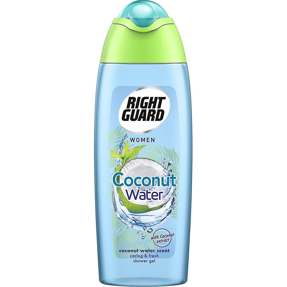 Right Guard Women Coconut Water Shower Gel (250ml). Coconut Water scent caring & fresh shower gel.. Enriched with natural coconut extract that takes you right away on a tropical journey. The mild and fresh creates a creamy foam that protects the sin from drying out and leaves a super soft skin feeling.